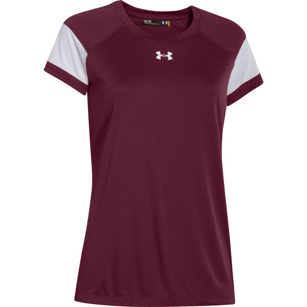 Under Armour Women's Maroon UA Stripe Tech Locker Short Sleeve Tee