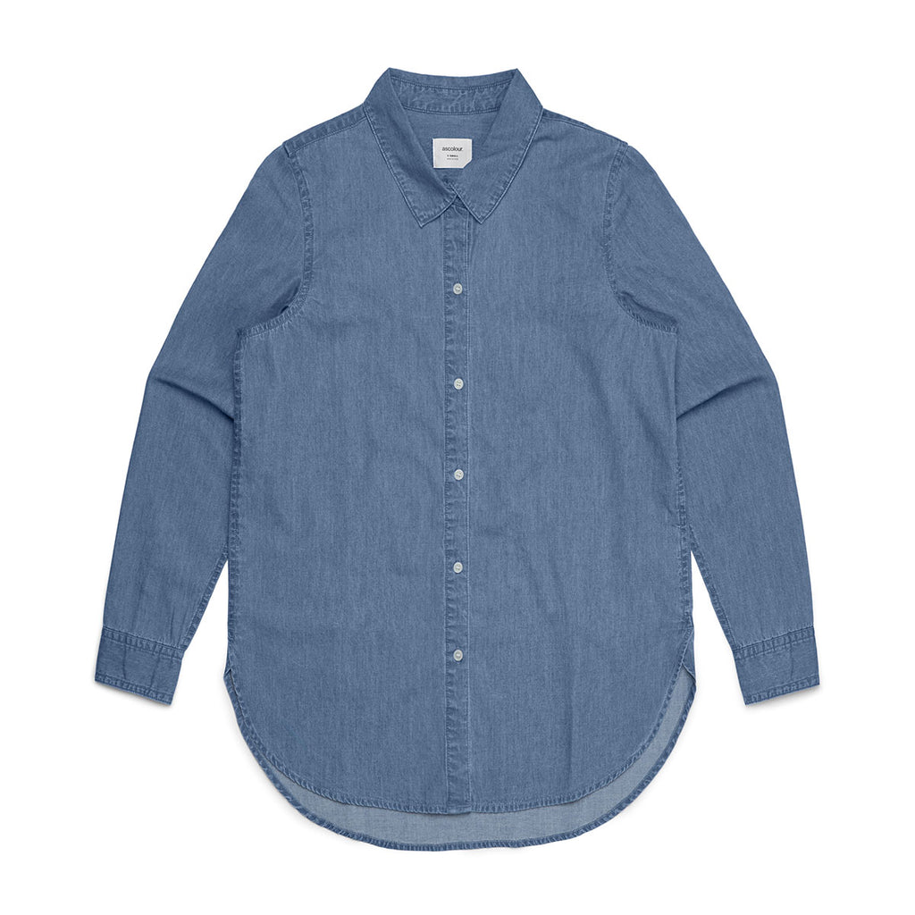 You can never go wrong with the branded AS Colour Women's Denim Blue Blue Denim Shirt. Made from 100% cotton and coming in a regular fit, this custom logo shirt is ideal for casual days off and will look great with any outfit. Roll up the sleeves for a casual look, or leave them done up for a polished look. The clear buttons contrast beautifully against the lovely light denim colour, with details such as side seams and a deep curved hem with longer back adding the finishing touches. This shirt can be embroidered with your logo, so it's a great way to promote your brand in style.