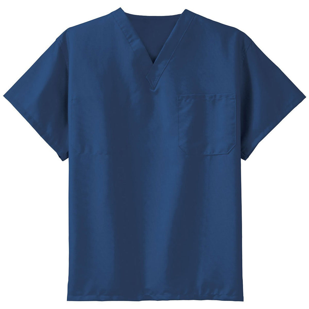 Physicians have to walk the workwear fine line between wearing rugged scrub tops and presenting a professional image that keeps patients at ease. The traditional cut on the CornerStone Men's Navy Reversible V-Neck Scrub Top handles the professional image part of the fine line. A highly durable 65/35 polyester/cotton blend takes care of the rugged side of the fine line. The stain resistant medical workwear scrub top prevents odors from affecting your much-needed concentration during surgeries and checkups. Chest pockets on both side of the scrub top provide ample space to store smaller medical devices, as well as offer you the opportunity to sew on a custom logo that promotes your hospital or medical office.