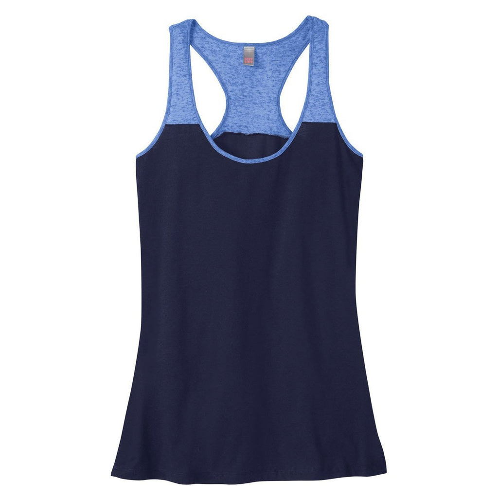 The custom District Women's True Navy/Deep Royal Varsity Tank contains a unique blend of 50% ring spun cotton and 50% polyester jersey to spark instant appeal. Perfect for any outdoor event or even just for enjoying the weather. This varsity tank is a great addition to any wardrobe. Ring spun cotton feels soft against the skin and long lasting polyester jersey resists rips and tears to give you years of use. Highly breathable, the blended fabric prevents any discomfort from extended wear. The color block look will pair well with current trends. Attach your corporate logo to enjoy more exposure for your event, promotion and more.
