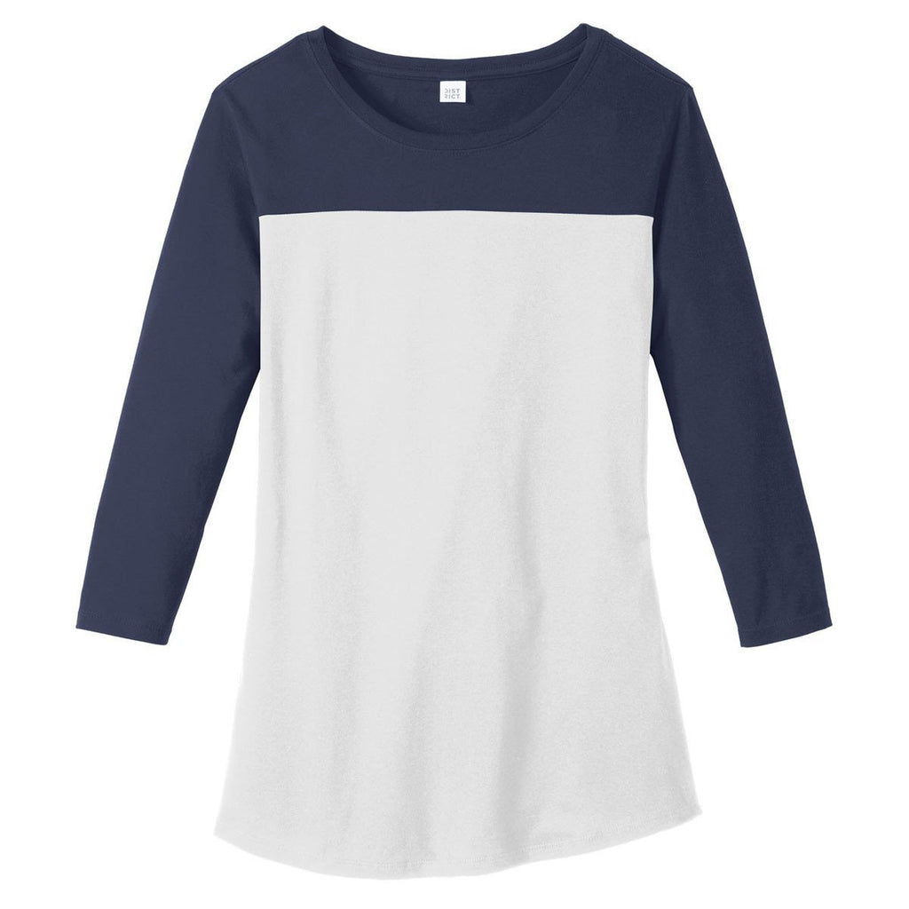 Display school spirit by wearing the logoed District Women's Deep Royal/Black Rally 3/4-Sleeve Tee. The versatile three-quarter length sleeve tee creates a relaxed fit and the longer length ensures the shirt remains comfortable. The lightweight tee contains 100% ring spun cotton that feels super soft against the skin. The slightly curved hem makes a stylish fashion statement your kid's friends will notice. All of those details would be great on their own but we can take it one step further. Add a custom logo that promotes your event or promotion. With the added decoration it is perfect for any event or great for relaxing around the house.