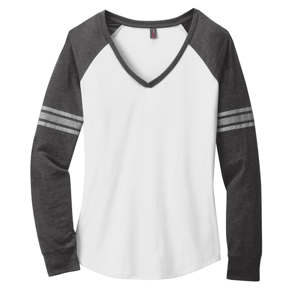 District Made Women's White/Heathered Charcoal/Silver Game Long Sleeve V-Neck Tee