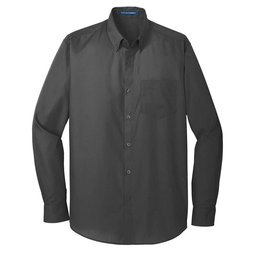 Wear the embroidered Port Authority Men's Graphite Long Sleeve Carefree Poplin Shirt to the next corporate event or industry trade show. The elegantly design poplin shirt exudes a care free attitude, while still keeping you in the upscale corporate fashion game. Cotton and polyester blended together produces a super soft shirt that withstands the rigors of frequent use. The box back pleat sends a powerful design message that you take how you look among your professional peers seriously. Add a custom logo on the large imprint area to spread the word about your company. Adjustable cuffs allow you to kick back after a long day at the office.