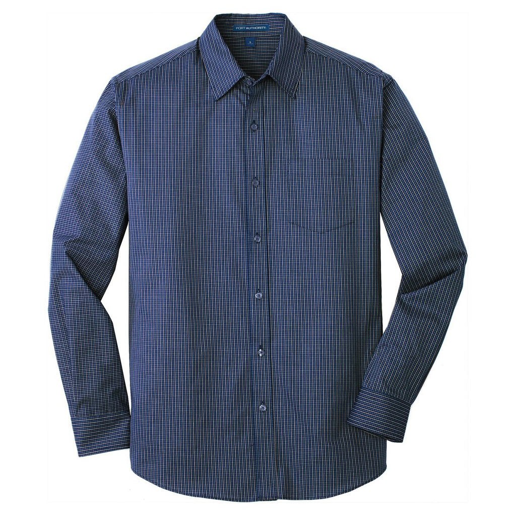 Port Authority has put a new fashion spin on a classic pattern by introducing the logoed Port Authority Men's Navy/Heritage Blue Micro Tattersall Easy Care Shirt. The stylish corporate apparel piece includes yarn-dyed micro tattersall to turn a traditional design into an eye popping fashion statement. Cotton and polyester blended together prevents the versatile shirt from wrinkling at the worst possible time. Outside back pleats and button through sleeve plackets raises the fashion bar for dress shirts. Attach your embroidered logo on the large imprint area to get the word out about your products and services. Your logo will look great and your employees will be happy with this functional and polished dress shirt.