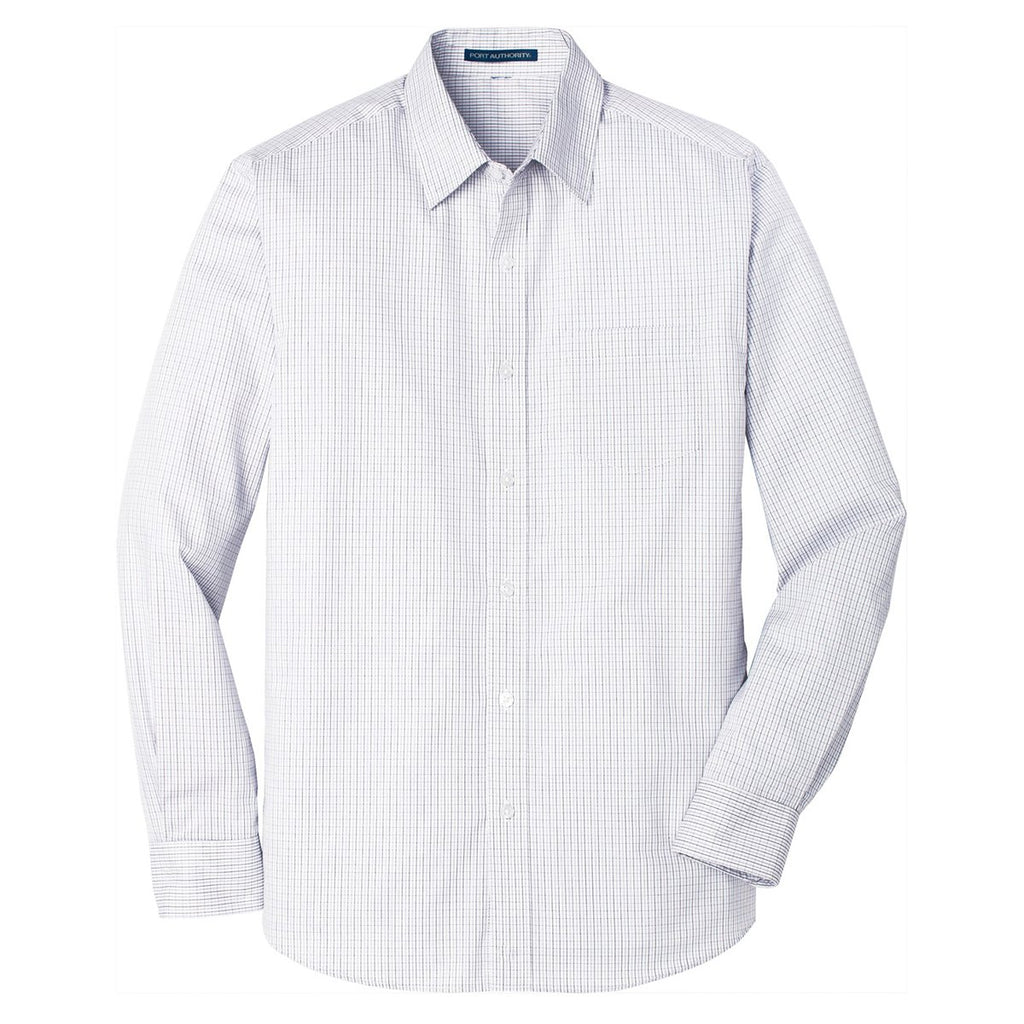 Port Authority has put a new fashion spin on a classic pattern by introducing the logoed Port Authority Men's White/Dark Grey Micro Tattersall Easy Care Shirt. The stylish corporate apparel piece includes yarn-dyed micro tattersall to turn a traditional design into an eye popping fashion statement. Cotton and polyester blended together prevents the versatile shirt from wrinkling at the worst possible time. Outside back pleats and button through sleeve plackets raises the fashion bar for dress shirts. Attach your embroidered logo on the large imprint area to get the word out about your products and services. Your logo will look great and your employees will be happy with this functional and polished dress shirt.