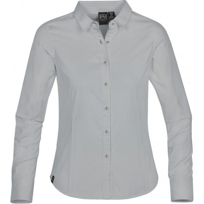 You want to look casual yet ready for work, stylish yet functional. What do you do? Simple: you choose this Stormtech Women's Cool Silver Lexington Chambray Shirt and you're off to the races. With the look of a blue-collar classic but the style of a white-collar stunner, this chambray shirt has it all. Except your custom logo - but we can help you in that department.