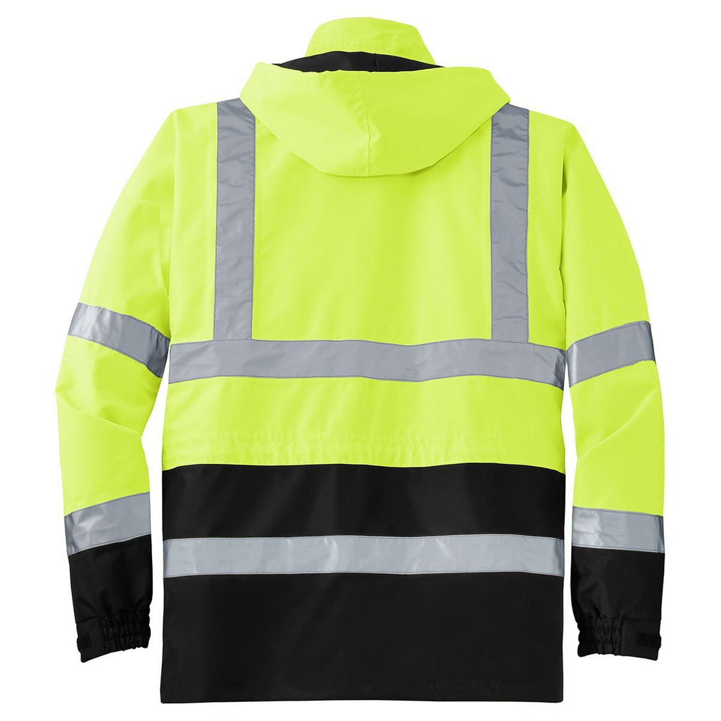 Don't left out in the cold during your next construction job. With an 8000MM fabric waterproof rating, the CornerStone Men's Safety Yellow/Black ANSI 107 Class 3 Waterproof Parka keeps you and your team dry throughout the shift. The heavily insulated workwear parka contains a 100% polyester shell to protect you against biting winter winds. Two large lower pockets store important tools and electronic devices. The waterproof parka has received the ANSI 107 Class 3 safety certification. Two-inch wide reflective taping covers the front, back, and sleeves of the construction site parka. Many construction workers take the workwear parka home for use during outdoor recreational activities.
