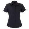The Identitee Women's Black Aston Short Sleeve Shirt with custom logo is a smart choice for the summer months and warmer days. Stay comfortable and look great at work with this logoed cotton and polyester blend shirt, complete with seam and stitch details on the panels. Made in a modern cut, the fit is very flattering and added details such as the gentle curve hem, side splits and matching buttons work together to make this an easy-wearing shirt. Collar and placket give it a traditional appearance that will work great whether in the office, working on the shop floor or even outdoors. Offered in a wide range of colours, give your corporate logo some much needed exposure and upgrade your staff uniforms today.