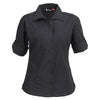 An elegant addition to your work wardrobe, you can't go wrong with the logoed Identitee Women's Black Murray 3/4 Sleeve Shirt. This shirt is made from a poly/cotton blend in a regular fabric which can be embroidered with your company logo. It features concealed twin pockets for all your storage needs, as well as roll up tab on the sleeves for added detail and visual interest. There is a seam detail on the shoulder and back, and this shirt is exceptionally easy to care for. With 3 different colours to choose from and trendy 3/4 sleeves, this shirt will fit right in at the office.