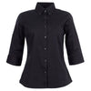 The custom logoed Identitee Women's Black Baxter 3/4 Sleeve Shirt is perfect for your next formal event or even as a staff uniform. This branded shirt is offered in timeless black or white, and it is made from a blend of cotton, polyester and spandex for great comfort and easy care. It has a modern fit which will suit most people, as well as a button-down collar for a formal edge. Tonal horn buttons round out the look. Designed to be tucked in, this shirt is elegant and will help you look your best whether you are going to work or a black-tie event. Customise for staff uniforms or giveaways today.
