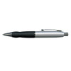 - Retractable brass barrel ball pen with a lacquered barrel, a soft rubber grip and shiny chrome accents