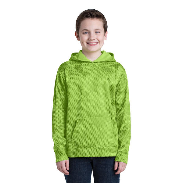 Sport-Tek Youth Black/Deep Red Sport-Wick CamoHex Fleece Colorblock Hooded Pullover