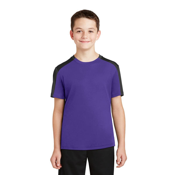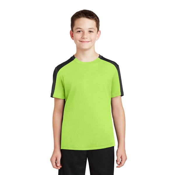 Sport-Tek Youth Forest Green/Iron Grey PosiCharge Competitor Sleeve-Blocked Tee