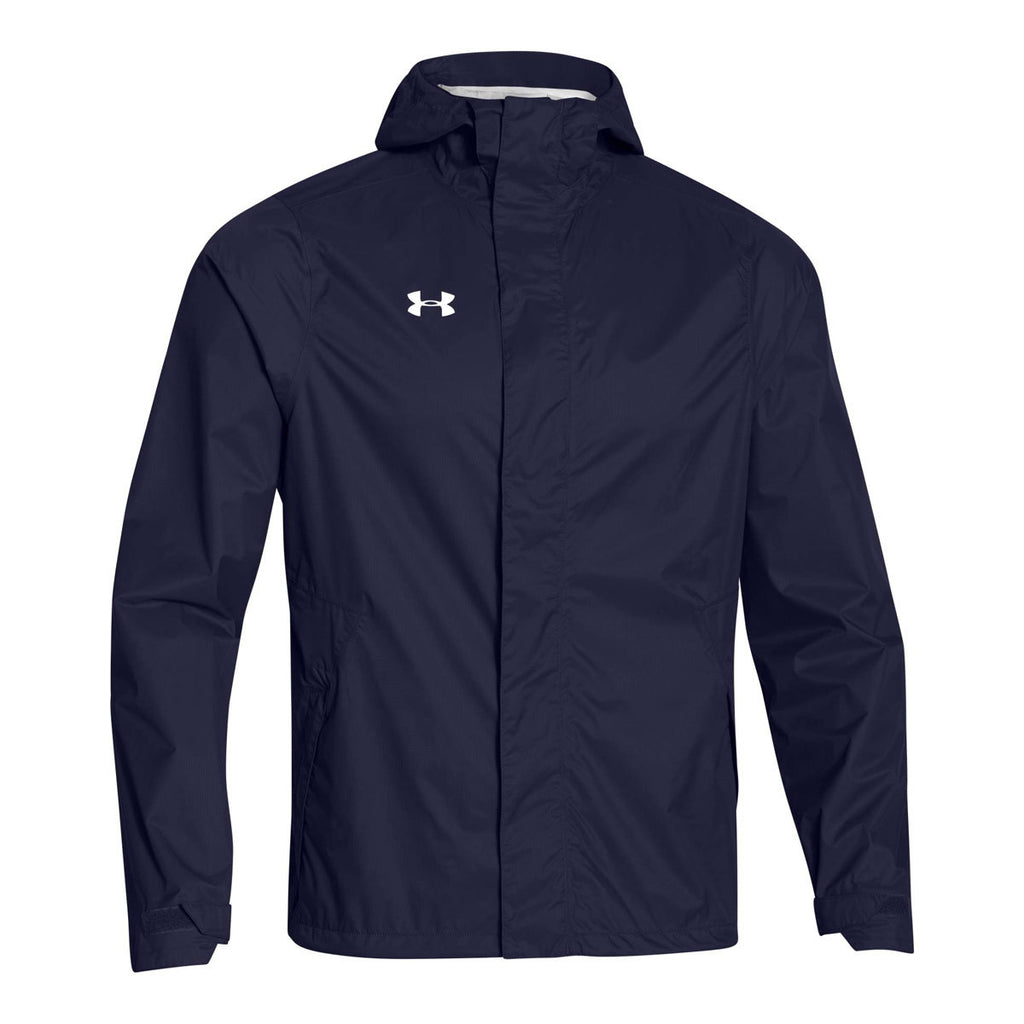 You thought that a light rain jacket had only one job to do: keep out the rain. Well, that might be its most important function, but have you ever stopped to consider what constitutes a high-quality rain jacket? Consider this Under Armour Men's Midnight Navy Ace Rain Jacket. Its 100% nylon fabric is ideally suited for handling the rain. The full sealing and waterproofing-well, that's a given. The three-piece hood, though? The ergonomic cuffs? The zippered hand pockets and a full-zip storm flap? Now we're talking about a rain jacket that's on a slightly different level from the usual stuff. All it needs is your custom embroidered logo and we've got a match made in heaven.