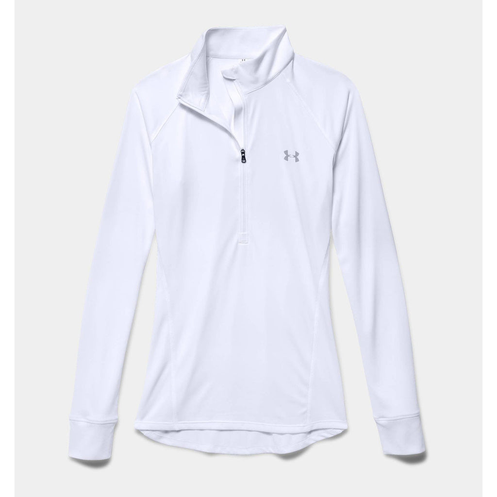 Want to squeeze more action out of your clothes? Then it's time to do more than just look for the right brand-although Under Armour is a step in the right direction. It's also time to find the exact items that will suit your active lifestyle. For starters, this Under Armour Women's White UA Tech 1/2 Zip is an ideal combination of comfort and athleticism, working both as a casual option and handling an active lifestyle of hiking, cycling, and more with ease. Just add your unique twist to it in the form of your logo added to this quarter zip and you can fashion this piece into something even more: a fantastic piece of corporate branding.