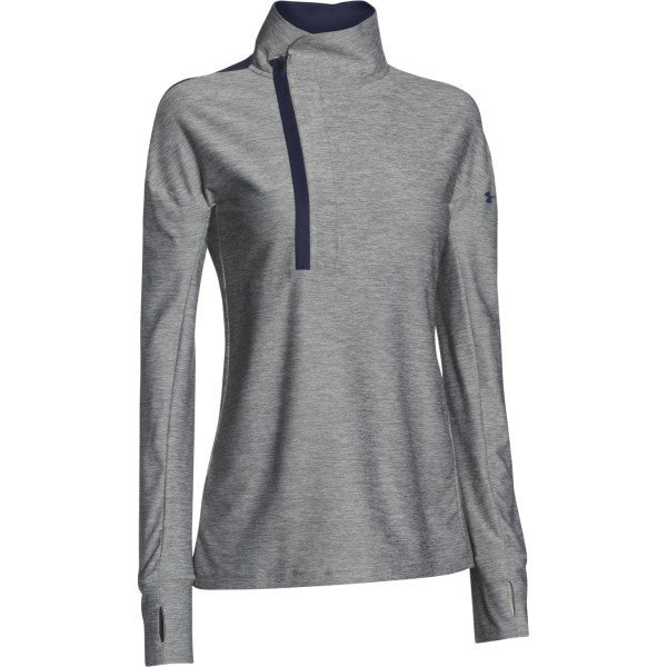 Need to get outdoors with a quick, effective layer that won't leave you feeling stifled? Then we've got exactly what you need, and it comes in the form of this Under Armour Women's Midnight Navy Hotshot 1/2 Zip. With plenty of anti-pill fabric to keep you warm without trapping in too much heat, this is the perfect shirt to wear when the weather's not cooperating-but you're still holding out hope that it might. The Signature Moisture Transport will wick away sweat so you don't sweat through your clothes, and the 4-way stretch fabric…well, you'll have to feel it to believe it. Use our custom embroidery process to brand this piece with your own unique logo.