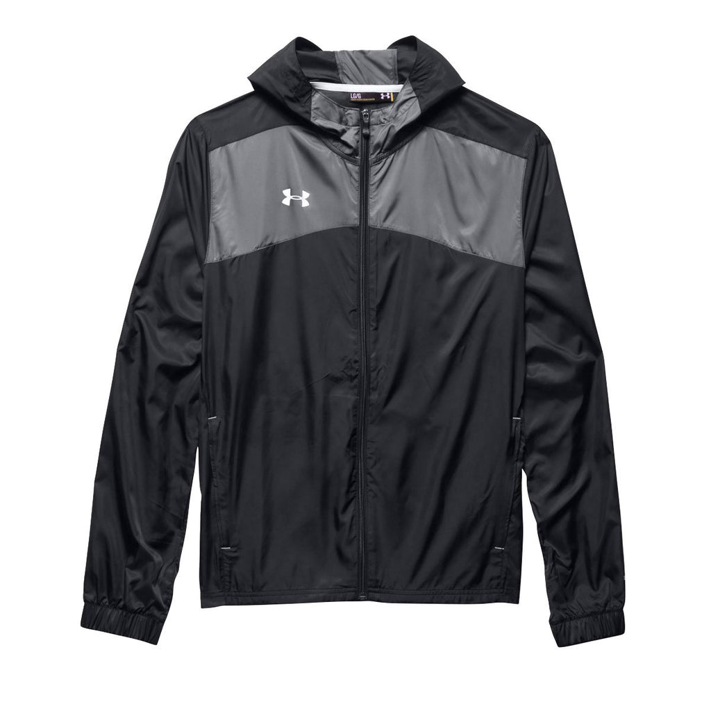 "Going into one's shell" has many negative connotations. We think that's a bunch of rubbish. Consider this Under Armour Men's Black Futbolista Shell. Not only does it offer the kind of weather protection you might need at a moment's notice, but it's every bit the athletic piece as any other clothing article in your wardrobe. Why? Because it's got ripstop woven fabric that's both light and strong. Because it's got a DWR finish for enhanced rain resistance. Because it's a shell after all, and shells can be good things when you do indeed need the protection. Make this shell your own with a custom embroidered logo when you work with Merchology.