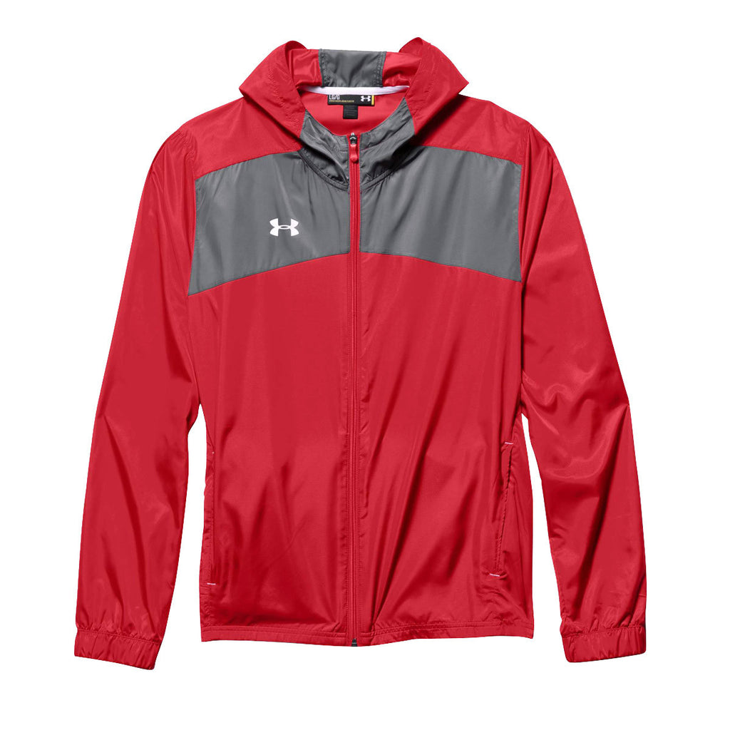 "Going into one's shell" has many negative connotations. We think that's a bunch of rubbish. Consider this Under Armour Men's Red Futbolista Shell. Not only does it offer the kind of weather protection you might need at a moment's notice, but it's every bit the athletic piece as any other clothing article in your wardrobe. Why? Because it's got ripstop woven fabric that's both light and strong. Because it's got a DWR finish for enhanced rain resistance. Because it's a shell after all, and shells can be good things when you do indeed need the protection. Make this shell your own with a custom embroidered logo when you work with Merchology.