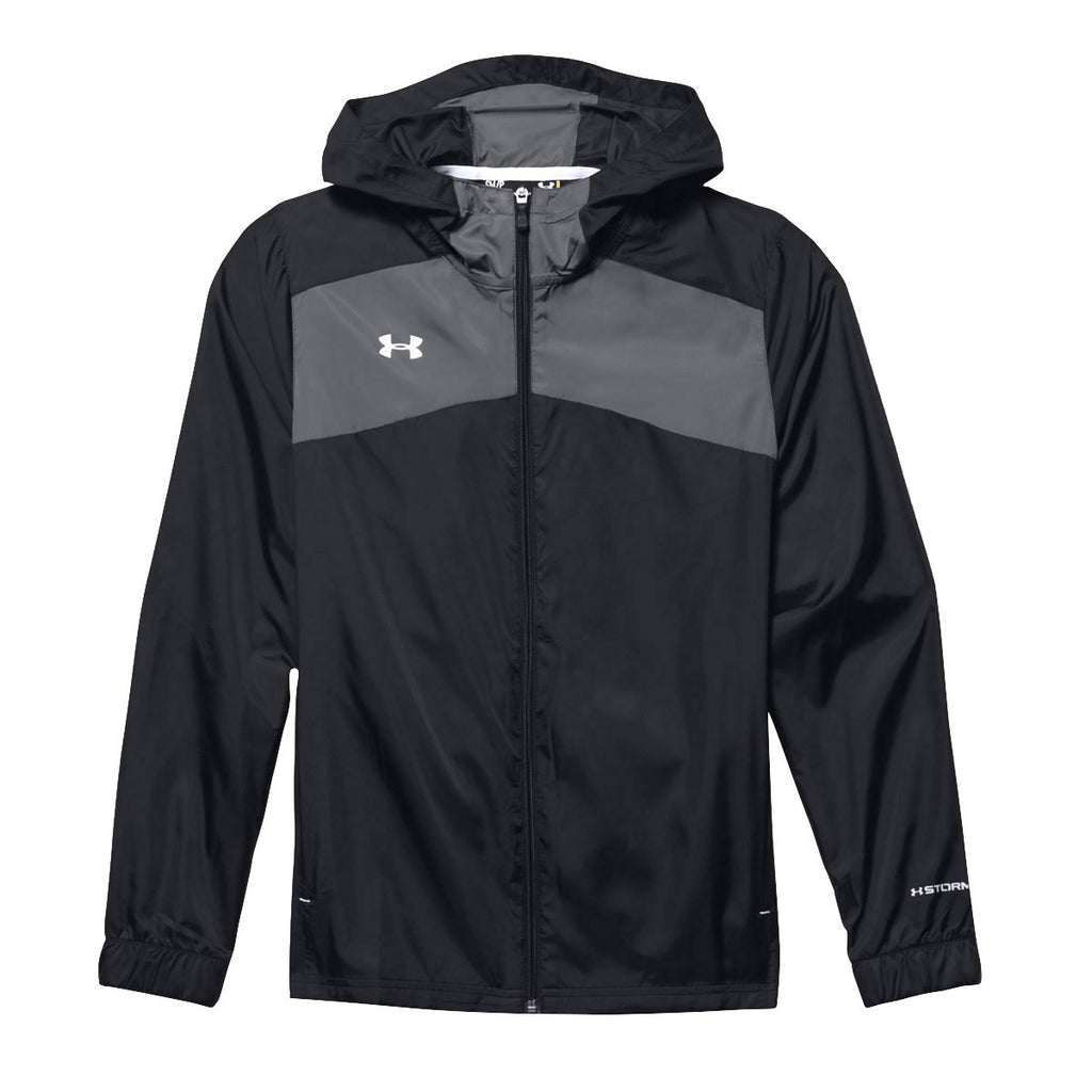 What if there was a great shell jacket out there that was light, strong, comfortable, and capable of handling everything you could throw at it? Of course, we're not asking a rhetorical question here. We've really found it. This Under Armour Women's Black Futbolista Shell features a water-resistant finish so that you don't have to worry about those pesky rainy days. And it nails all of the other details too, right down to the added material on the back hem for better coverage and the uniquely shaped hood. All you need to make it uniquely yours for use or for giving away? Your logo on the front, custom embroidered by Merchology.