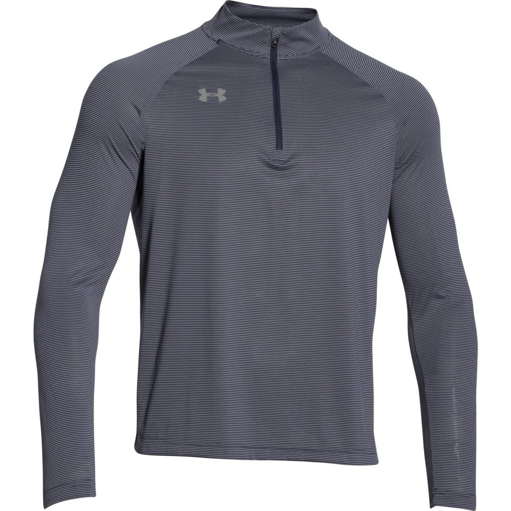 Who says you can't be every bit the athlete while feeling as comfortable as possible? With the Under Armour Men's Midnight Navy Steel Stripe Tech 1/4 Zip, you'll get the best of both worlds. The Updated UA Tech fabric has a softer, more natural feel. But it's functional too, keeping the odor at bay with anti-odor technology and raglan sleeves for added mobility. And the Under Armour logo is subtle, giving you the room you need for your corporate embroidery or company logo. If you want to stay active in cool weather all while rocking your own brand, look no further. You've found the quarter zip for you.