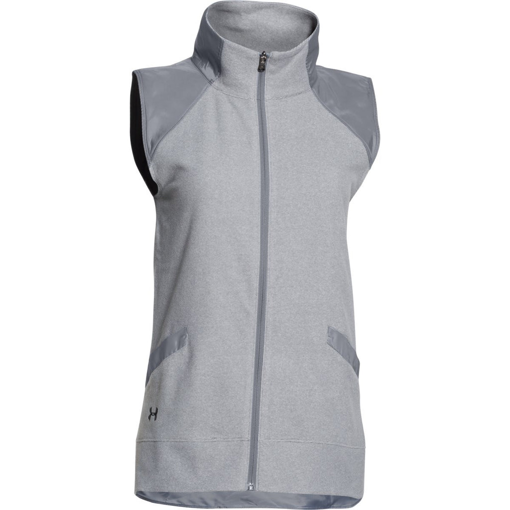 Getting the most out of a fleece vest isn't just about an athletic pedigree-though Under Armour offers that in abundance. When you look more closely at this Under Armour Women's Steel Performance Fleece Vest , you'll see that it's about much more than that. That includes interior, super-soft brushed fleece that's as comfortable as any fleece has the right to be. That includes a Signature Moisture Transport System for giving you a light, breathable feeling even when the mercury rises. And it includes even small details like a stand collar for staying warm and feeling your best. All it's missing? Your custom logo added right to the front to brand this apparel as uniquely yours.