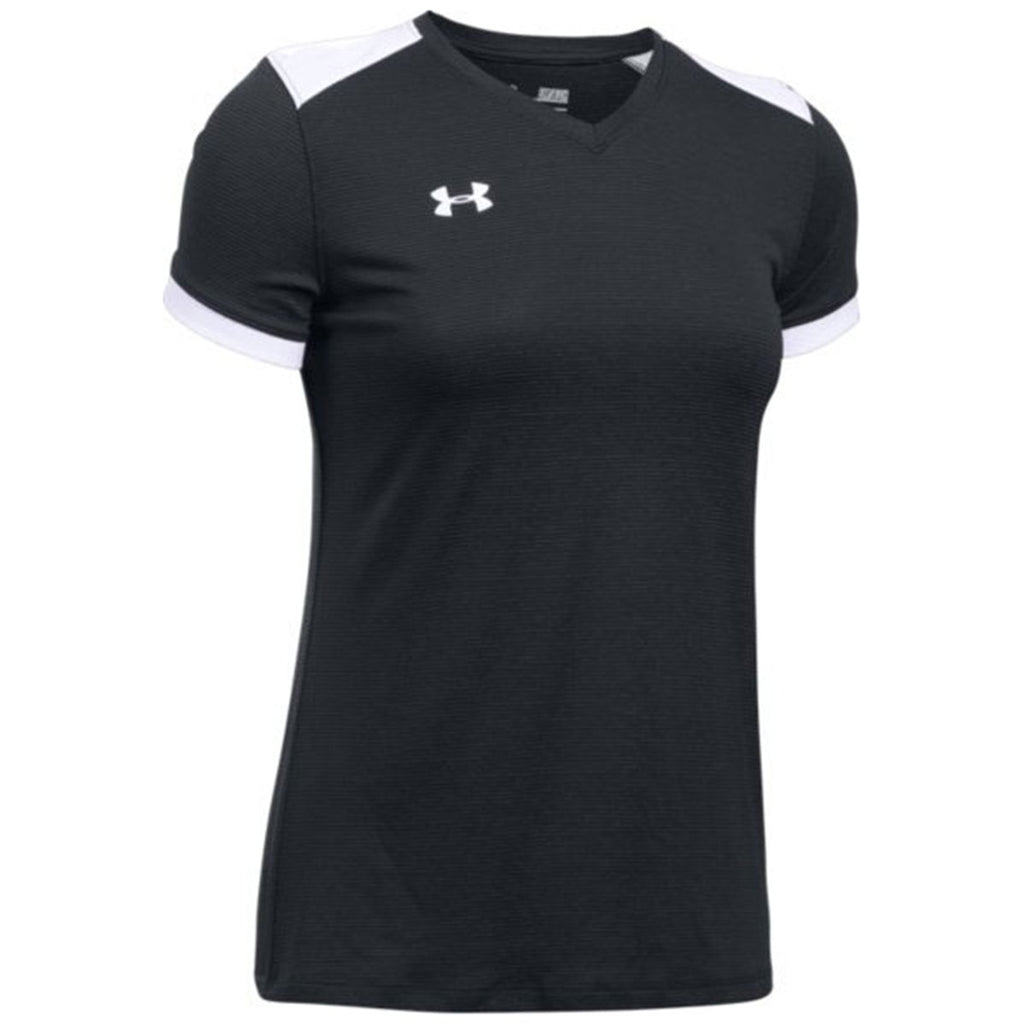 Reward the female members of your corporate team by giving the custom logoed Under Armour Women's Black Threadborne Match Jersey. Tough to rip and tear polyester makes the athletic corporate apparel perfect for wearing at company softball games or on your next trip to the gym. This t-shirt is also a great option as the first layer under a full zip or hoodie on the colder days of the year. Enjoy increased movement flexibility in every direction because of the stretch fabric. Proprietary Under Armour Threadborne Microthread fabric quickly removes moisture to prevent any discomfort. Add your corporate logo on the large imprint area to convert customer prospects into loyal patrons of your business.