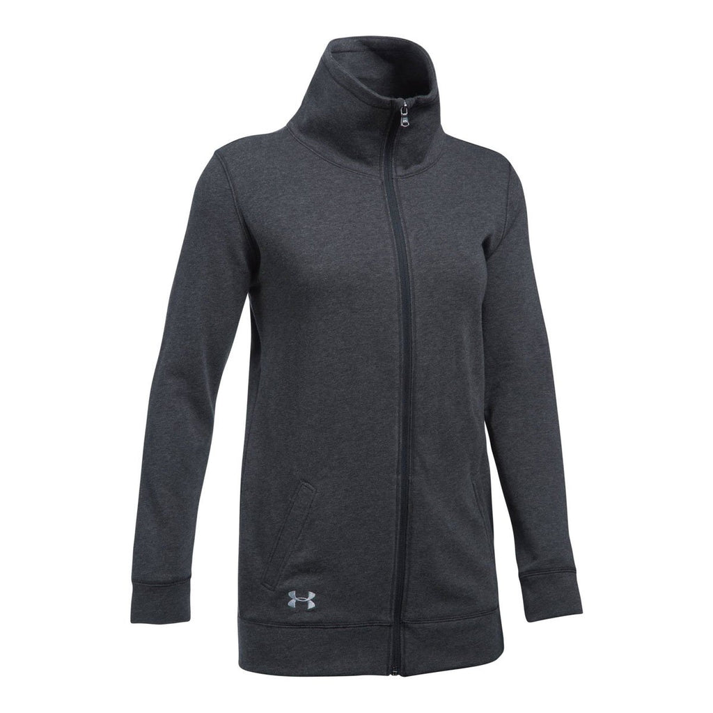 With a generous, more relaxed fit, the logoed Under Armour Women's Black Team Traveler Jacket from Under Armour never clings to the skin or chafes the body to offer supreme comfort. Super smooth French Terry fabric contains moisture wicking technology. Cotton and polyester combine to form a powerful fashion punch by delivering a soft feel, while not compromising high durability. The spacious funnel neck and adjustable draw cords create the perfect fit for all occasions. Add a custom logo to spread the word about your company at professional networking events.