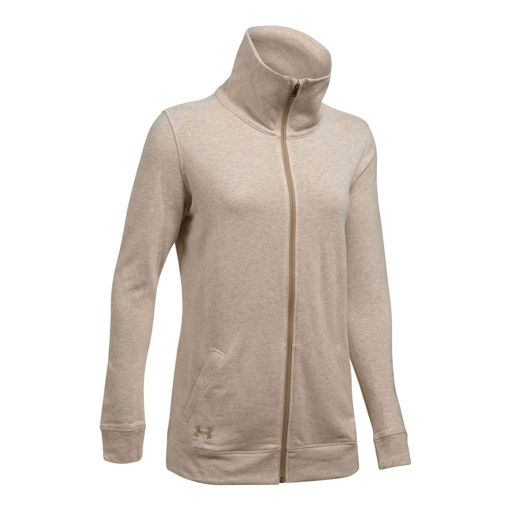 With a generous, more relaxed fit, the logoed Under Armour Women's Oatmeal Heather Team Traveler Jacket from Under Armour never clings to the skin or chafes the body to offer supreme comfort. Super smooth French Terry fabric contains moisture wicking technology. Cotton and polyester combine to form a powerful fashion punch by delivering a soft feel, while not compromising high durability. The spacious funnel neck and adjustable draw cords create the perfect fit for all occasions. Add a custom logo to spread the word about your company at professional networking events.