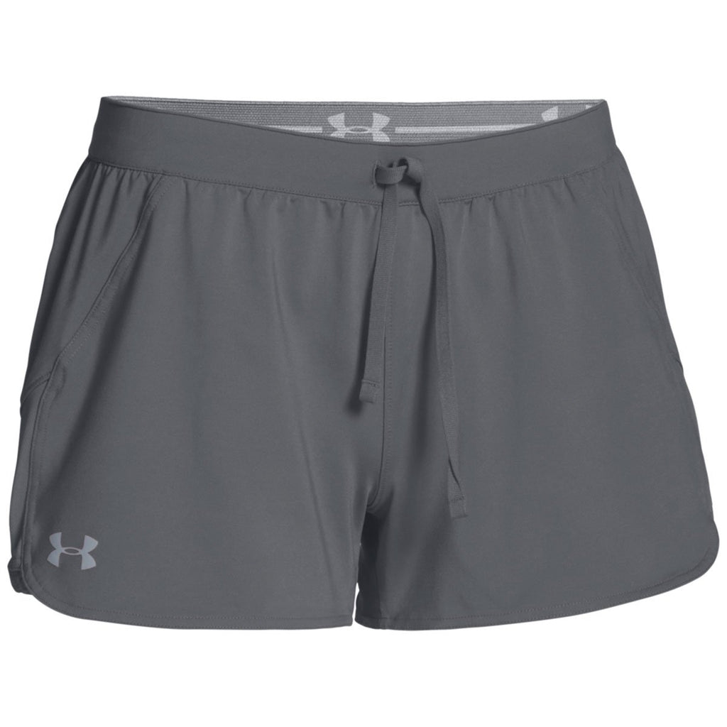 With game time fast approaching, put on the custom logoed Under Armour Women's Graphite Game Time Short to get a leg up on the competition. Adjust the external draw cord to achieve the optimal fit for the soft, internal branded waistband. Notched side mesh panels encourage the circulation of air to improve fabric breathability. The most polyester pair of shorts withstands the punishment delivered by an active lifestyle. Nearly 20% elastane enhances your mobility to take the lead in a corporate sponsored race. Attach your company logo to get the word out about your brand at civic events.