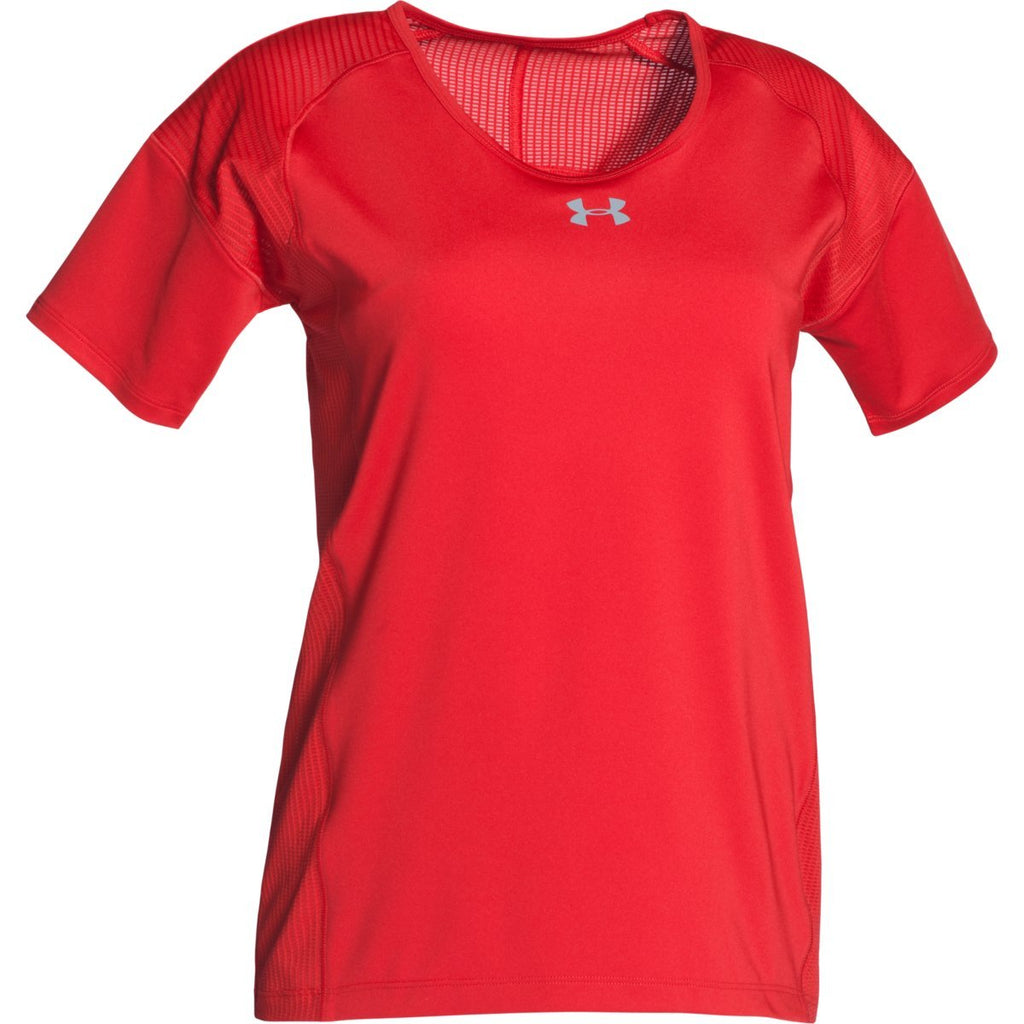 Order the versatile embroidered Under Armour Women's Red Game Time Tee to take care of all your fashion needs. Wear the lightweight tee as a stand-alone garment for participating in competitive sports, as well as the first layer of a winter fashion ensemble that keeps you comfortably warm. Strategically placed mesh paneling across the sides and shoulders encourages the circulation of air to cool you down before you overheat. Blended polyester and elastane resist rips and tears to give you a go to tee for years to come. Attach your corporate logo on the large imprint area to attract potential customers.