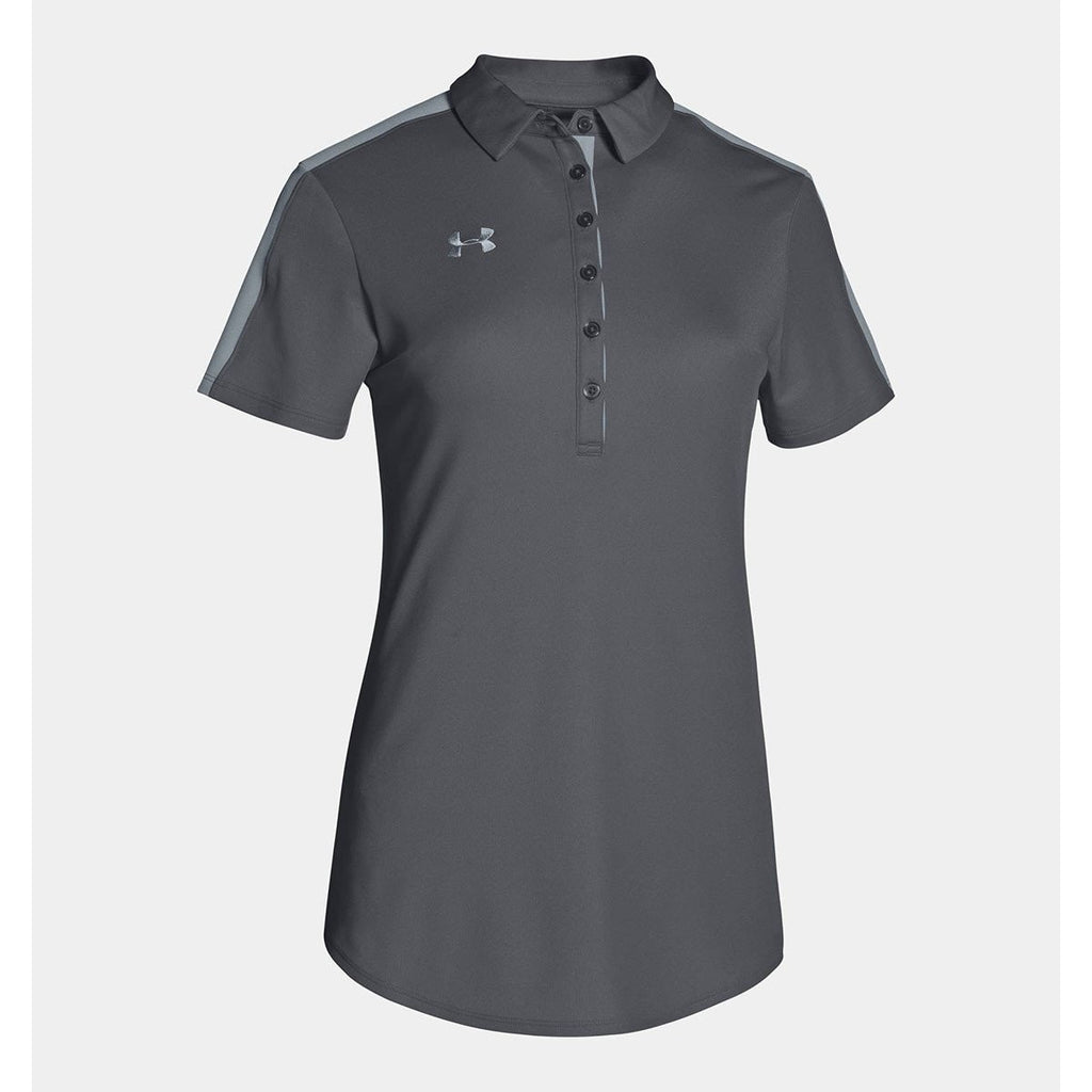 There's something to be said for the classic minimalism of the standard American polo. But you're not here for the standard. You want something a little bit different-something with a little bit of oomf. This Under Armour Women's Graphite Team Colorblock Polo is the perfect way to stand out from the crowd while still maintaining that same classic style you've always loved. The quality collar and the sturdy buttons are perfect details that will make it easy to wear this polo again and again, particularly if you remembered to add on your custom or corporate logo to add to this shirt's branding appeal.