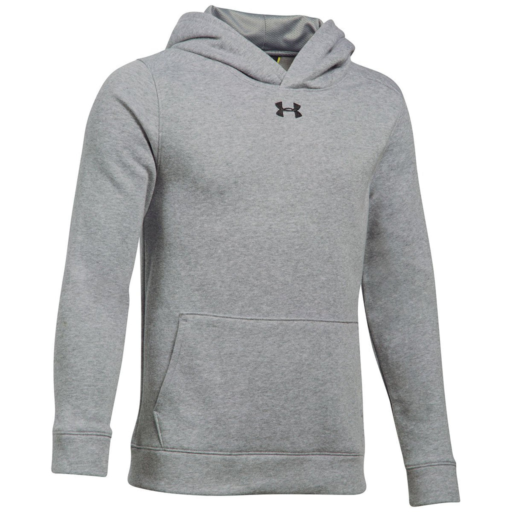 Raise the standard for corporate marketing by giving away the custom Under Armour Boy's True Grey Heather Hustle Fleece Hoodie. The fleece hoodie includes a large imprint area to attach a custom logo. When your company baseball team takes the field, you increase awareness of your products and services because of the attention grabbing logo. Moisture wicking technology quickly removes discomfort to give your team the edge when the pressure ramps up. Cotton and polyester blended together delivers supreme comfort and long lasting durability.
