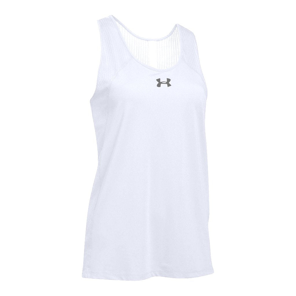 Take your fashion game to the next level by ordering the company logoed Under Armour Women's White Game Time Tank. Color block detail creates a visually appealing appearance that makes your team stand out in the field. The loose fit and classic racer back will attract the interest of the peers you meet at corporate retreats. The performance fabric quickly wicks away moisture to deliver optimal comfort on hiking and camping trips. Four-way stretch design increases your mobility to give you the edge over the competition. Add a custom logo on the large imprint area to boost your company image.