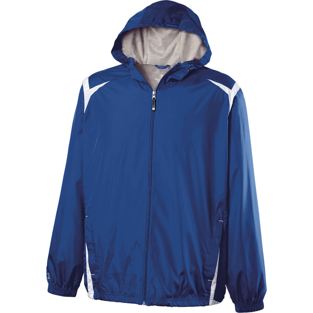 Set a collision course for high-end fashion by ordering the decorated Holloway Men's Royal/White Full Zip Hooded Collision Jacket. The versatile jacket includes a large imprint area to add your company logo. With a custom logo prominently displayed, you reach more customer prospects at industry trade shows. The adjustable hood ensures you enjoy the perfect fit all day long. Show off the sleek open bottom hem and encased shock cord to show professional peers your brand stands for high quality products. Durable polyester forms the exterior to ensure the jacket remains in pristine condition for years to come.