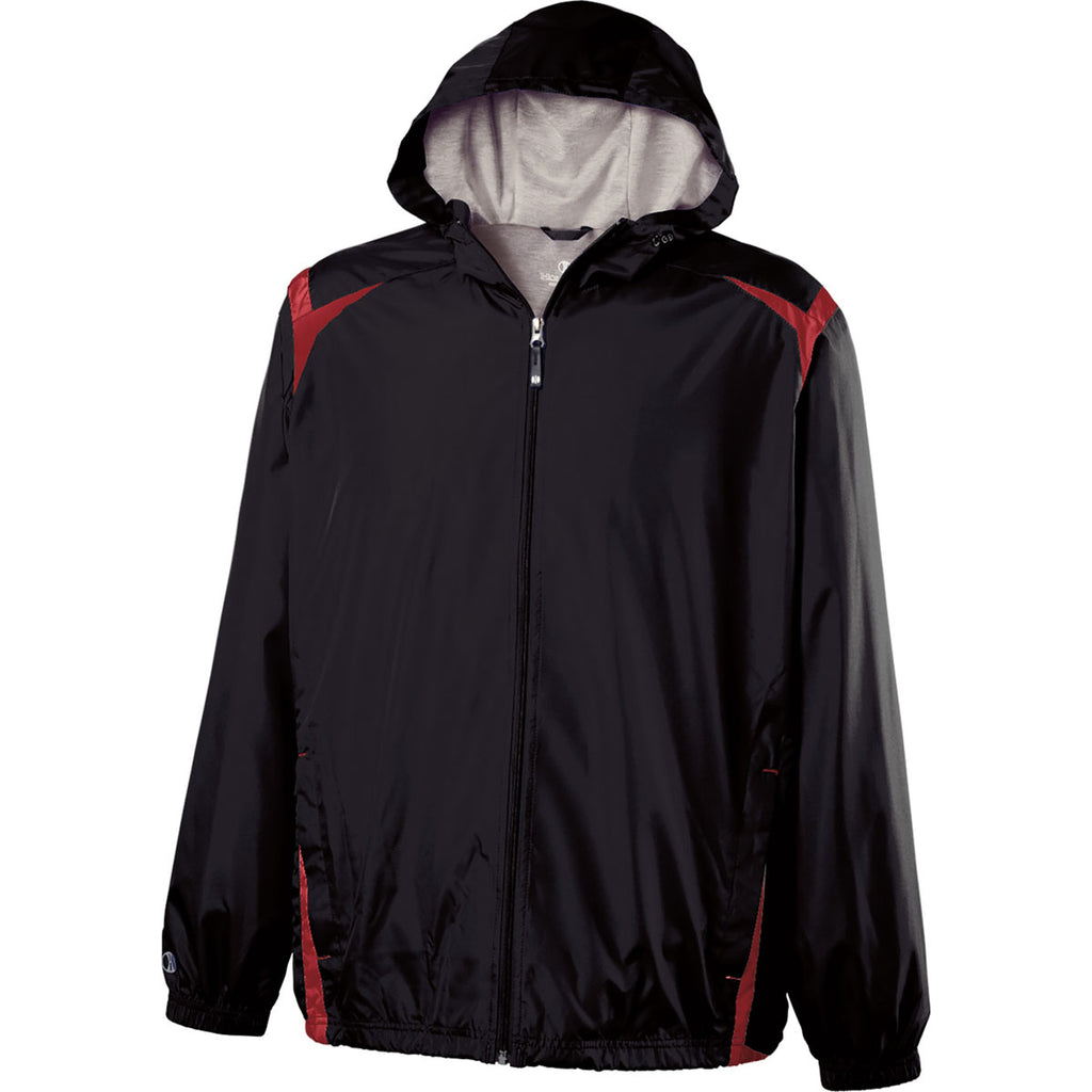 Set a collision course for high-end fashion by ordering the decorated Holloway Men's Black/Scarlet Full Zip Hooded Collision Jacket. The versatile jacket includes a large imprint area to add your company logo. With a custom logo prominently displayed, you reach more customer prospects at industry trade shows. The adjustable hood ensures you enjoy the perfect fit all day long. Show off the sleek open bottom hem and encased shock cord to show professional peers your brand stands for high quality products. Durable polyester forms the exterior to ensure the jacket remains in pristine condition for years to come.