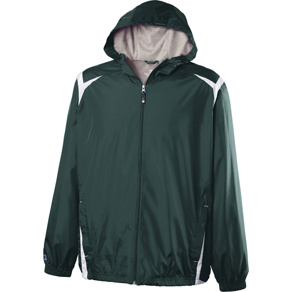 Set a collision course for high-end fashion by ordering the decorated Holloway Men's Dark Green/White Full Zip Hooded Collision Jacket. The versatile jacket includes a large imprint area to add your company logo. With a custom logo prominently displayed, you reach more customer prospects at industry trade shows. The adjustable hood ensures you enjoy the perfect fit all day long. Show off the sleek open bottom hem and encased shock cord to show professional peers your brand stands for high quality products. Durable polyester forms the exterior to ensure the jacket remains in pristine condition for years to come.