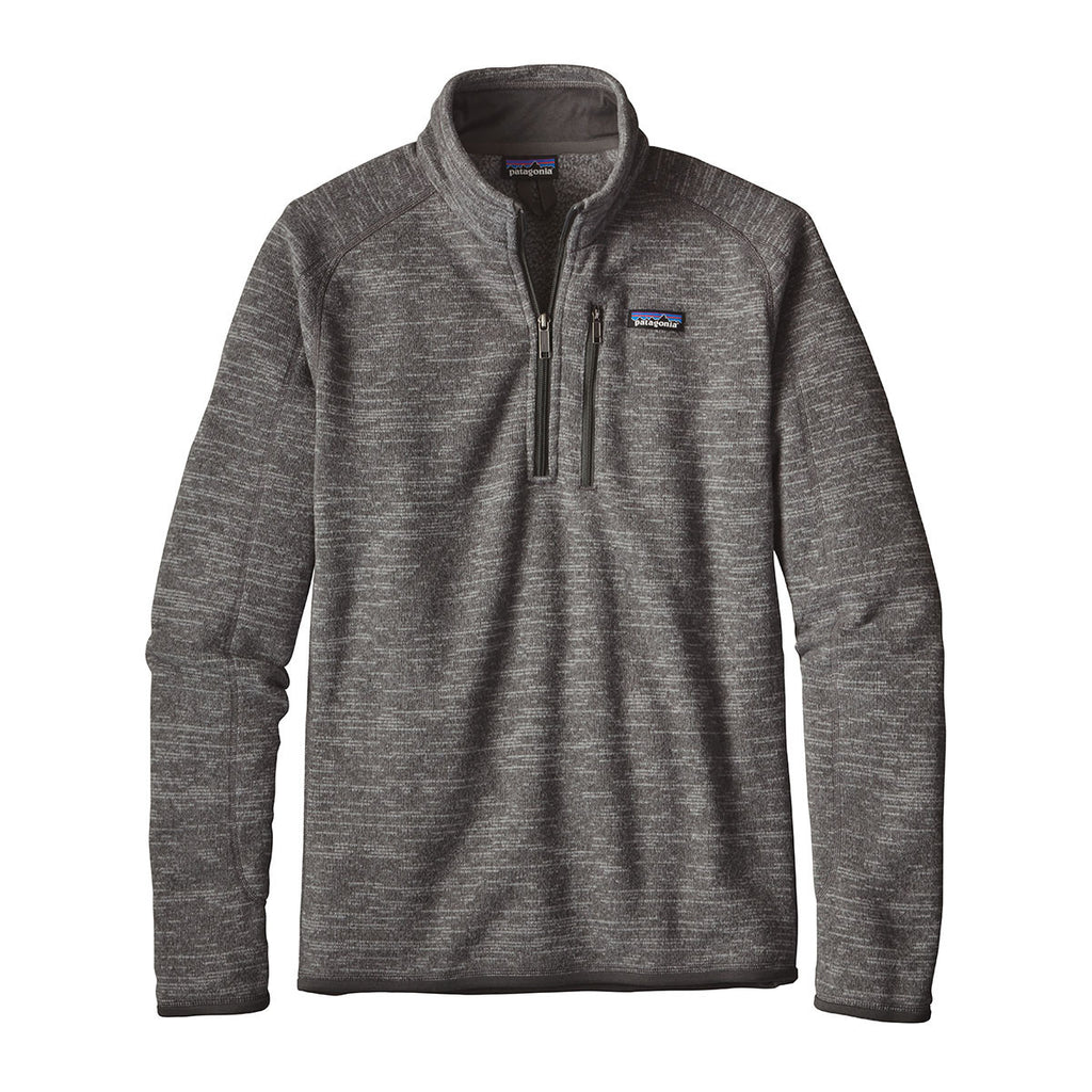 The Patagonia Men's Sweater 1/4 Zip doubles as a pullover and zip up sweater. You zip the tightly stitched zipper down about a quarter of the way to pull the sweater over your shoulders. Highly durable polyester fleece covers a smooth sweater frame that includes a moisture-evaporating interior to keep your employees cool under the collar during the most humid days. Patagonia sews Capilene 3 fabric into the hem, cuffs, pockets, and wind flap to prevent skin exposure to harsh elements. The stand up collar keeps the neck area warm and prevents moisture from rolling down the backs on users that spend considerable time in the wilderness.