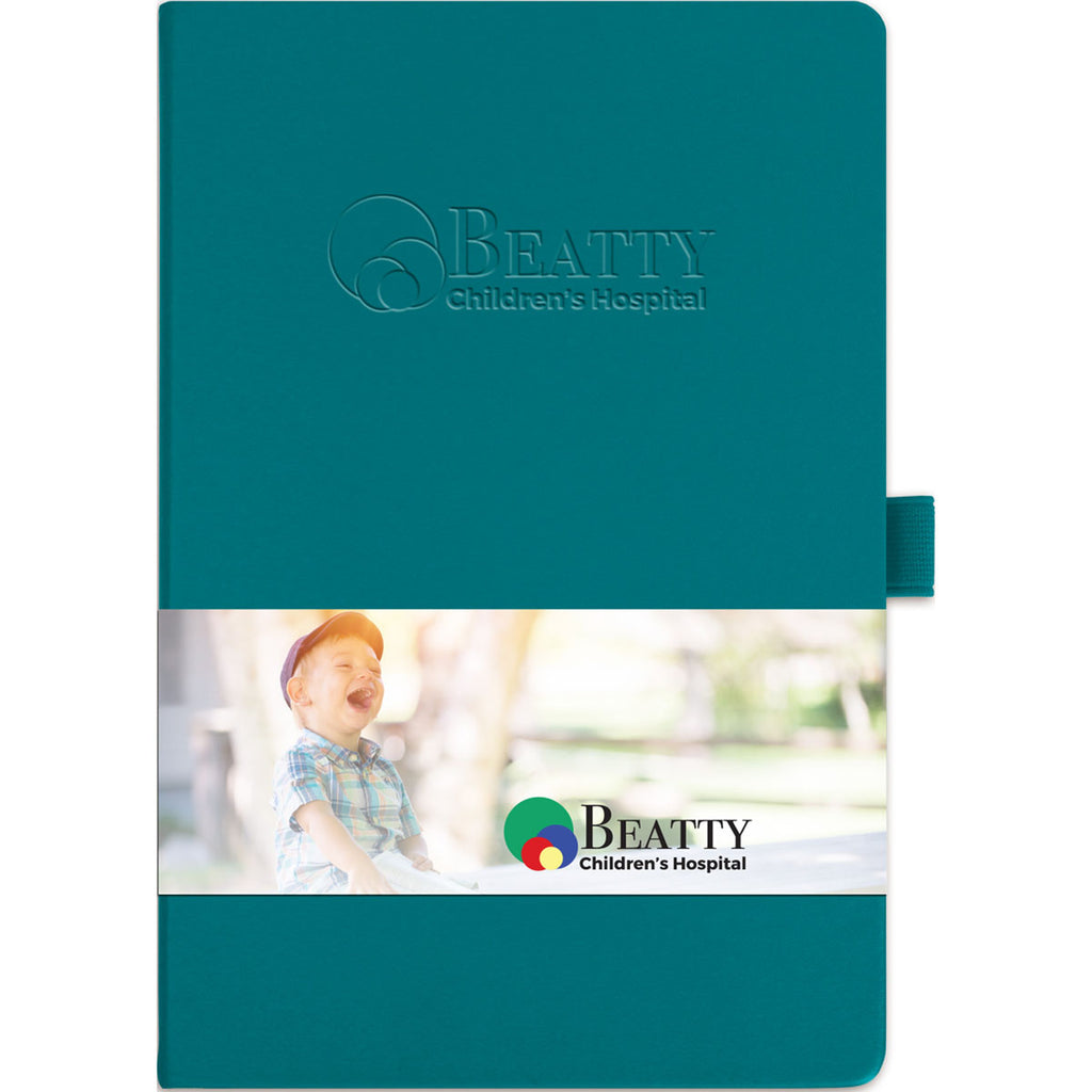 Allow your brand to show its true colours with this JournalBooks Turquoise Nova Soft Graphic Wrap Bound JournalBook. Add a full colour graphic wrap as well as a blind deboss logo to make everyone fully aware of what your brand stands for. Not to mention, this journal's beautiful colours and high quality construction are sure to impress.