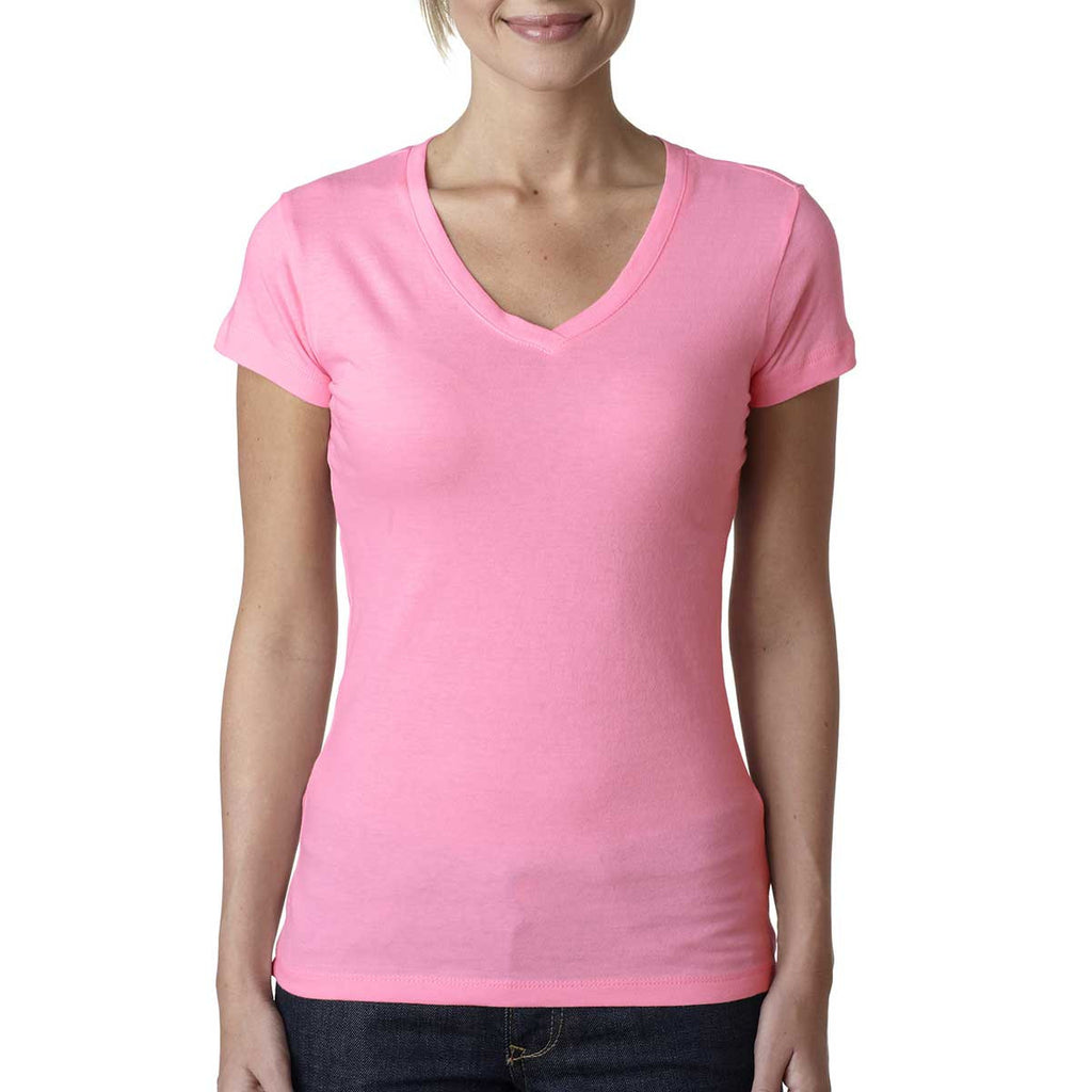 Remember how you bought that one tee shirt that completely overhauled your wardrobe and made you feel like you always had something to wear? No? Then it's time to get a tee that can actually do that for you. This Next Level Women's Neon Heather Pink Sporty V-Neck Tee will be the ideal layering piece, the ideal accompaniment to a casual day around the home, and the ideal shirt you can put in the washer and dryer and wear again fresh. Simply add your custom logo to make it the ideal way to represent your brand, too.