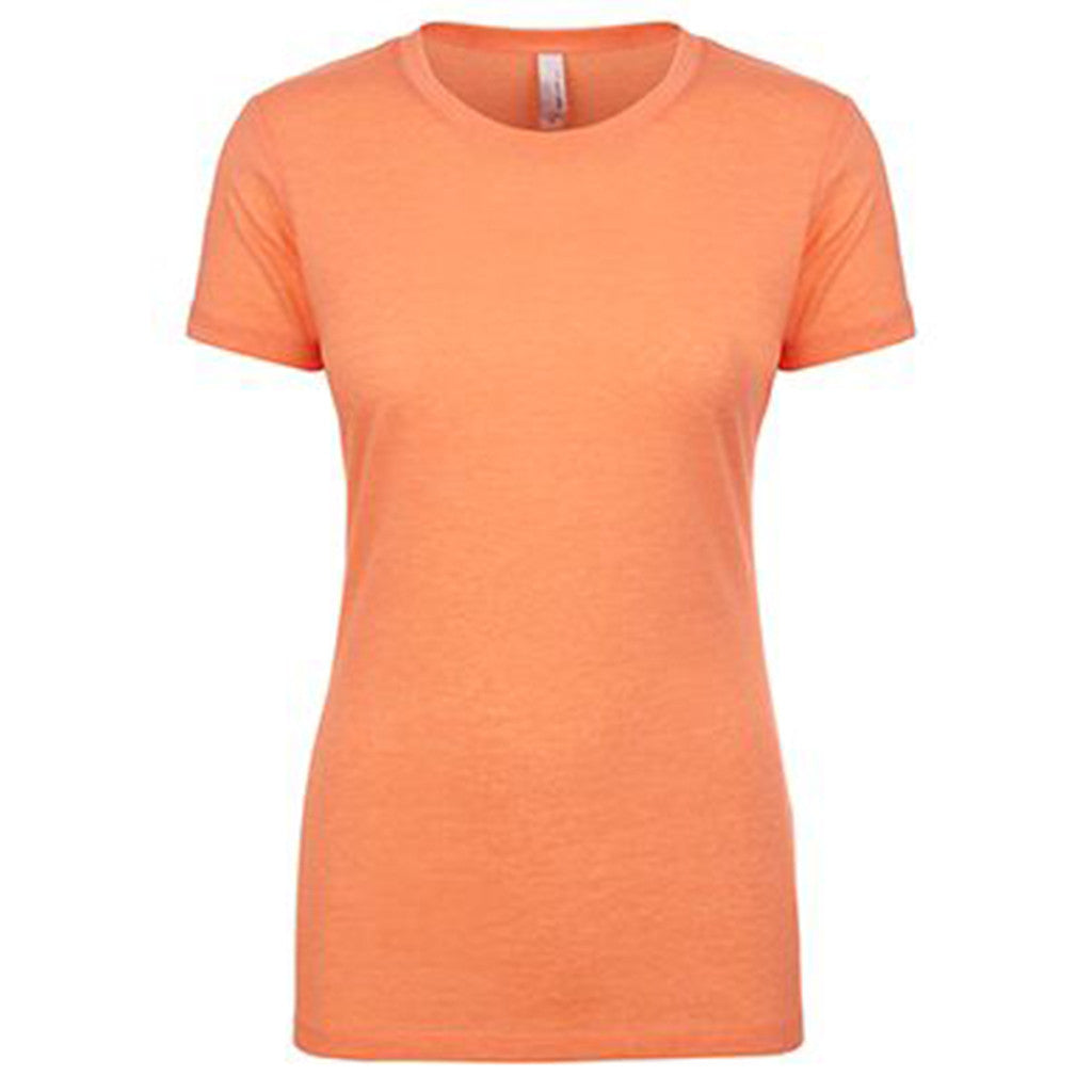 Take a closer look at the Next Level Women's Light Orange Poly/Cotton Short-Sleeve Tee. This isn't only a tee for the occasional use around the house, only to end up being used as a rag. No, this is a tee that delivers on it all: comfort, durability, and even style. Yes, we included the word "style" when describing a tee. If that doesn't tell you all you need to know about this item, then we don't know what to tell you. Except that you can add on your custom logo with Merchology.