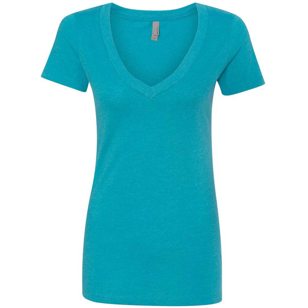 Adding another plain ol' crewneck tee to the outfit isn't always exciting. If you've ever agreed with that statement, perhaps it's time to switch to this Next Level Women's Bondi Blue CVC Deep V Tee. Not only does it offer a degree of style that you can't get with the usual tee, but it has all the comfort and carefree attitude of a crewneck. If only all shirts could give you an added layer of interest in your outfit without feeling like they added another layer of discomfort as well. But thankfully, v-necks like this can rescue a drab wardrobe in a hurry. With Merchology, you can add a custom logo to take this v-neck to the next level.