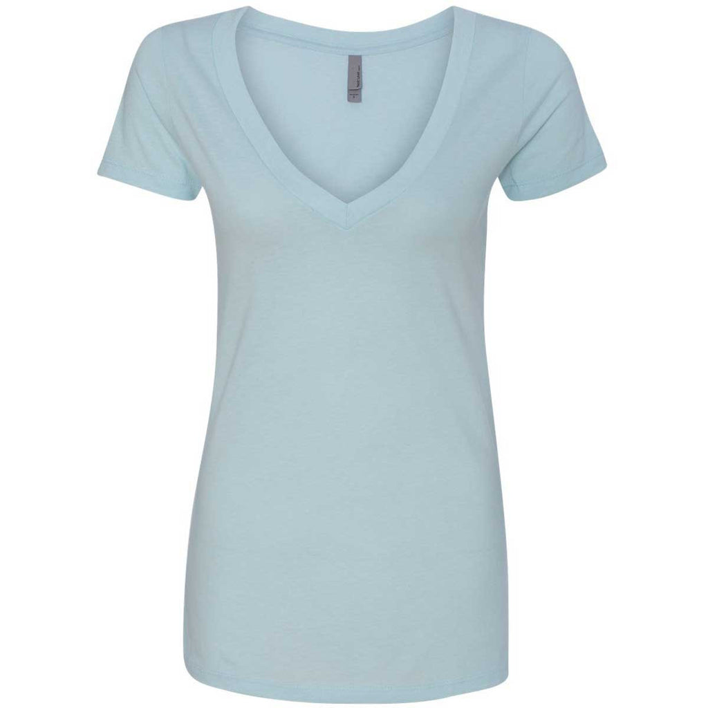 Adding another plain ol' crewneck tee to the outfit isn't always exciting. If you've ever agreed with that statement, perhaps it's time to switch to this Next Level Women's Ice Blue CVC Deep V Tee. Not only does it offer a degree of style that you can't get with the usual tee, but it has all the comfort and carefree attitude of a crewneck. If only all shirts could give you an added layer of interest in your outfit without feeling like they added another layer of discomfort as well. But thankfully, v-necks like this can rescue a drab wardrobe in a hurry. With Merchology, you can add a custom logo to take this v-neck to the next level.