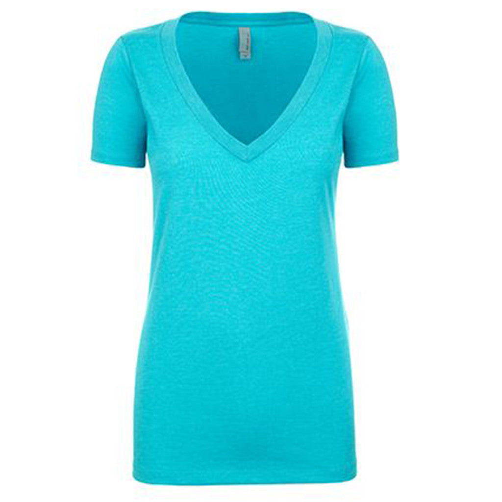 Adding another plain ol' crewneck tee to the outfit isn't always exciting. If you've ever agreed with that statement, perhaps it's time to switch to this Next Level Women's Tahiti Blue CVC Deep V Tee. Not only does it offer a degree of style that you can't get with the usual tee, but it has all the comfort and carefree attitude of a crewneck. If only all shirts could give you an added layer of interest in your outfit without feeling like they added another layer of discomfort as well. But thankfully, v-necks like this can rescue a drab wardrobe in a hurry. With Merchology, you can add a custom logo to take this v-neck to the next level.