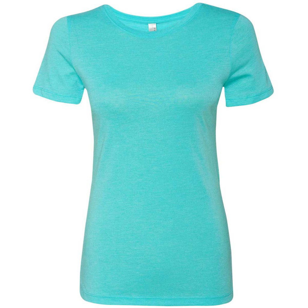 If you thought that all T-shirts are made alike, maybe it's time to revise that assumption. Your new evidence: the Next Level Women's Tahiti Blue Triblend Crew. You might figure that it looks like many other tees you've considered. But that's just surface-level thinking. Let's go deeper. With comfortable fabric used throughout and fine detailing in the same color, you'll notice that this shirt does a subtle yet tasteful job of emphasizing your customized logo. That is, of course, only if you decide to add your logo with Merchology. In that case, then maybe you knew more about quality tees than we thought.