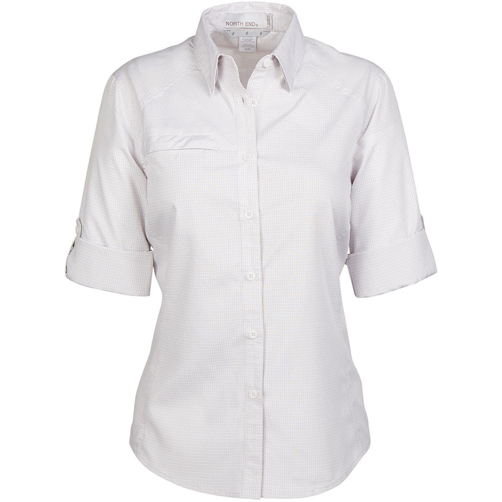 Adjustable cuffs allow you to roll up the sleeves on the North End Women's Crystal Quartz Excursion F.B.C. Textured Performance Shirt, whenever you need to pick up the pace on a work project. Rugged polyester includes moisture wicking technology to keep you cool during high-pressure events. The two-tone melange polyester presents a subtle, yet aesthetically appealing design that works in most professional environments. Double-needle flat felled side and underarm seams do an excellent job of preventing rips and tears to the fabric. The back yoke that includes side pleats adds a unique fashion touch to this versatile work shirt.