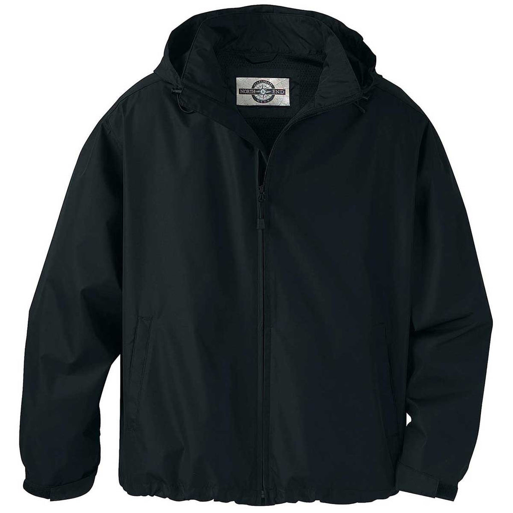 Lite doesn't mean you sacrifice quality for wearing a lightweight jacket. The North End Men's Black Techno Lite Jacket contains a 100% polyester mesh lining that never tears. Enjoy the water resistant finish that keeps you dry during sudden downpours. While the finish keeps the water out, moisture wicking technology removes the moisture from your skin. The adjustable shock cord at the hem and hood gives you the flexibility to adapt to rapidly changing weather conditions. Manipulate the adjustable cuffs to maximize your comfort. Promote your company by adding a custom logo to the large chest imprint area.