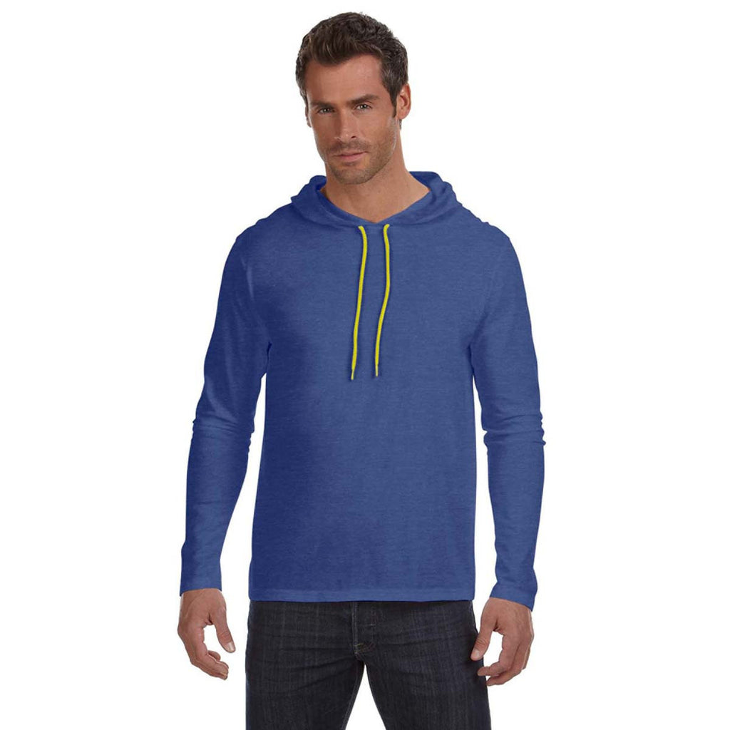 This Anvil Men's Heather Blue Lightweight Long-Sleeve Hooded T-Shirt breaks new fashion ground by combining the lightweight fabric of a t-shirt with the rugged construction of a hood that protects you against weather elements. The circular draw cord ensures you enjoy the most comfortable hood fit. Attach your company logo to the preshrunk combed ring spun cotton hooded t-shirt to increase awareness of your brand in the community.
