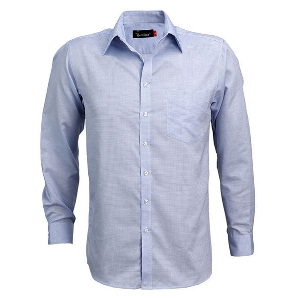 Maintain your corporate image with the custom logoed Identitee Men's Blue Sussex Long Sleeve Shirt. This shirt is perfect for the modern workforce, being made from a cotton/poly blend which is easily embroidered and exceptionally comfortable. It features a textured yarn dyed check all over, making it ideal for wearing under a suit jacket or on its own. It is contemporary styled with a European collar and cuff, as well as a single pocket for storage. It is durable and smart, being equipped with Pearl buttons for a high-end finishing touch. Pair with work pants and look your best in the office, add your company logo and upgrade your staff uniforms today.