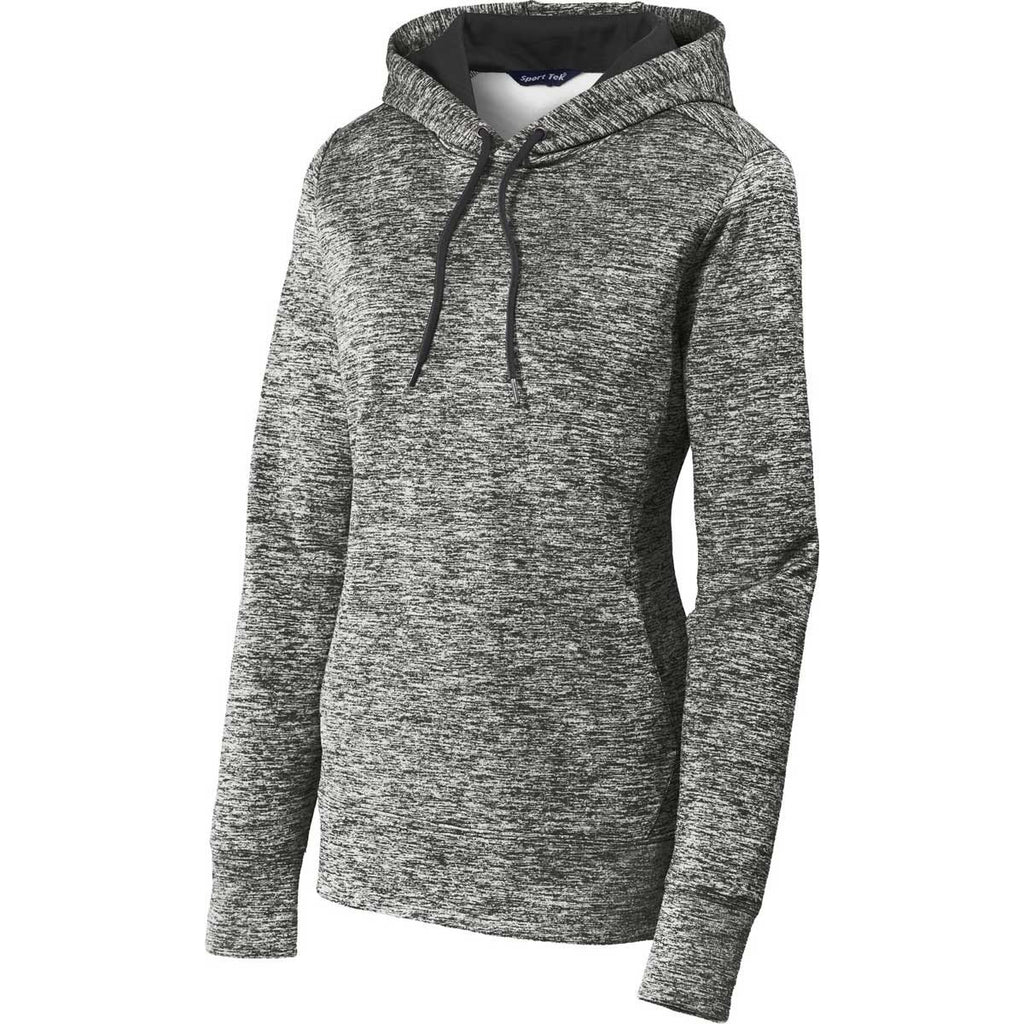 Designed with patented PosiCharge technology, the Sport-Tek Women's Black Electric PosiCharge Electric Heather Fleece Hooded Pullover does a great job of keeping your skin cool on the hottest days of the year. The 100% polyester moisture wicking fabric transfers perspiration from the skin to the surrounding air quickly. Heathered yarn dye allows you to match the pullover with a wide variety of pant styles, from classic denim blue jeans to khaki shorts. The three-panel hood acts as protection against blasts of frigid winter air. Add your corporate logo to the pullover for free company publicity.