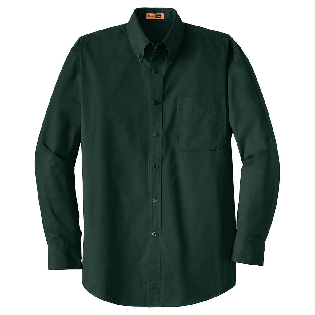 When the weather cools down, but you still need to direct your construction crew outside, consider buying the soft as a peach CornerStone Men's Dark Green Long Sleeve SuperPro Twill Shirt. CornerStone has combined the toughness of a 65/35 polyester/cotton blend with aesthetic appeal that projects a professional image. You can also buy the workwear shirt for your team, whenever they make sales calls to distributors. Add a custom logo on the left pocket to promote your business. Adjustable cuffs increase comfort levels and prevent the shirt sleeves from tangling onto something dangerous, such as heavy machinery. The stain resistant shirt never reeks of foul odors, after a bustling day inside of a sweltering hot manufacturing plant.